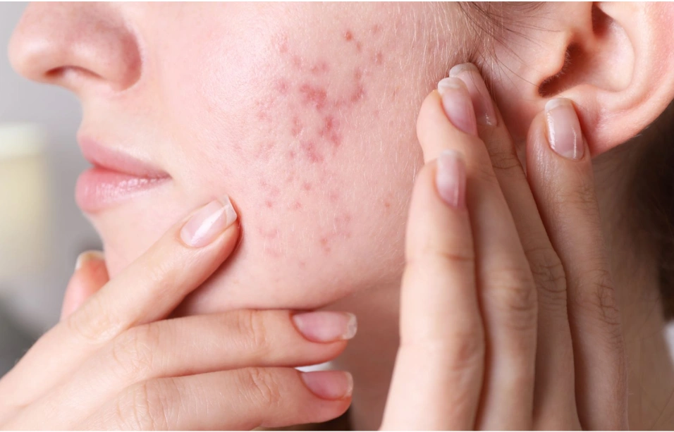 Hormonal acne is a type of acne triggered by internal hormonal imbalances. It often affects adults, especially women, and tends to appear around the lower face and jawline. The breakouts can be deep, painful, and cyst-like.